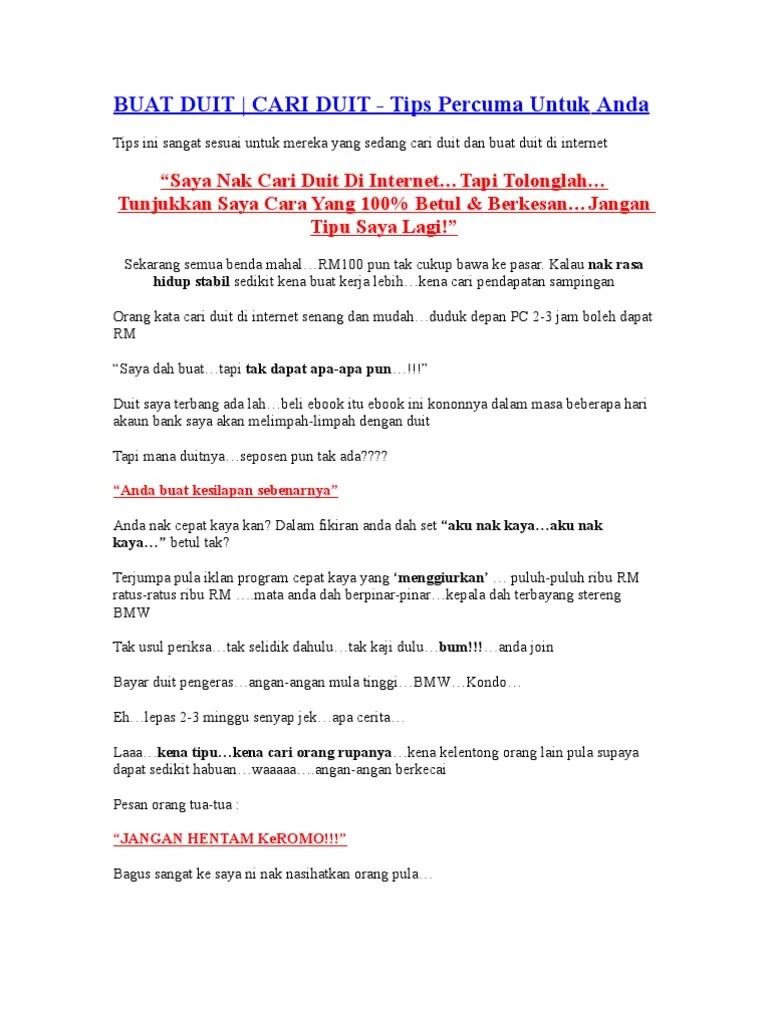 Cara Buat Duit Percuma