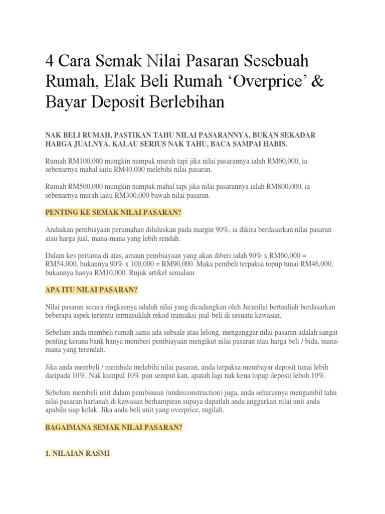 Credit To @ 4 Cara Semak Nilai Pasaran Sesebuah Rumah