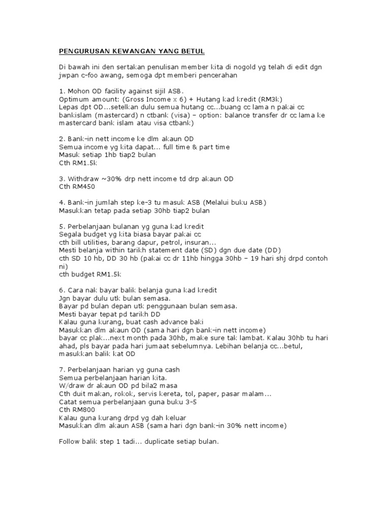 Credit To @ Pen Gurus An Kewangan Yang Betul